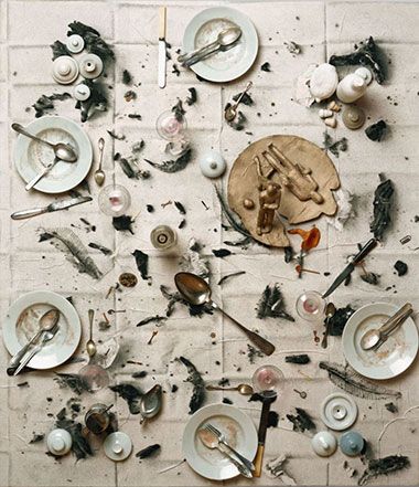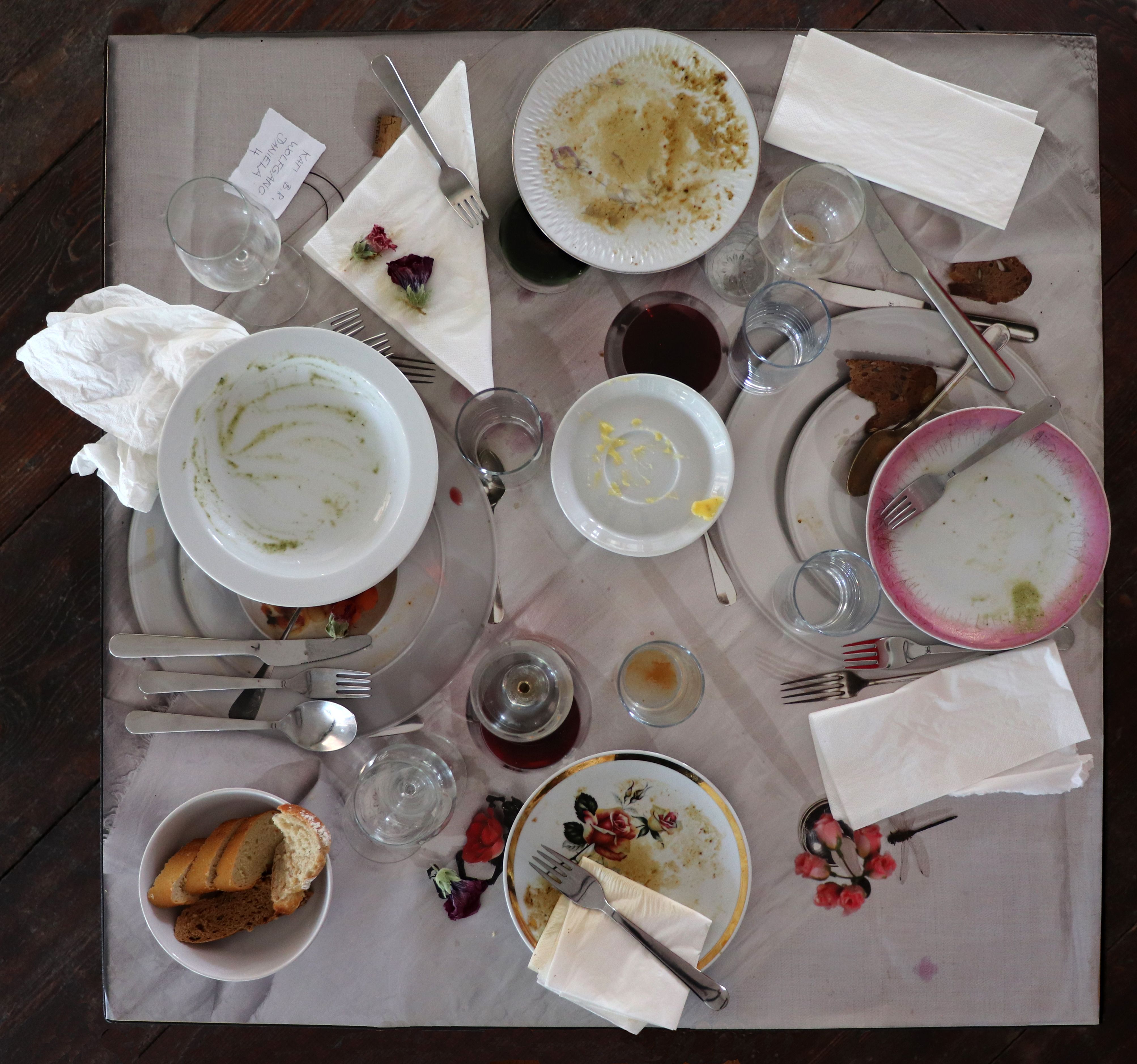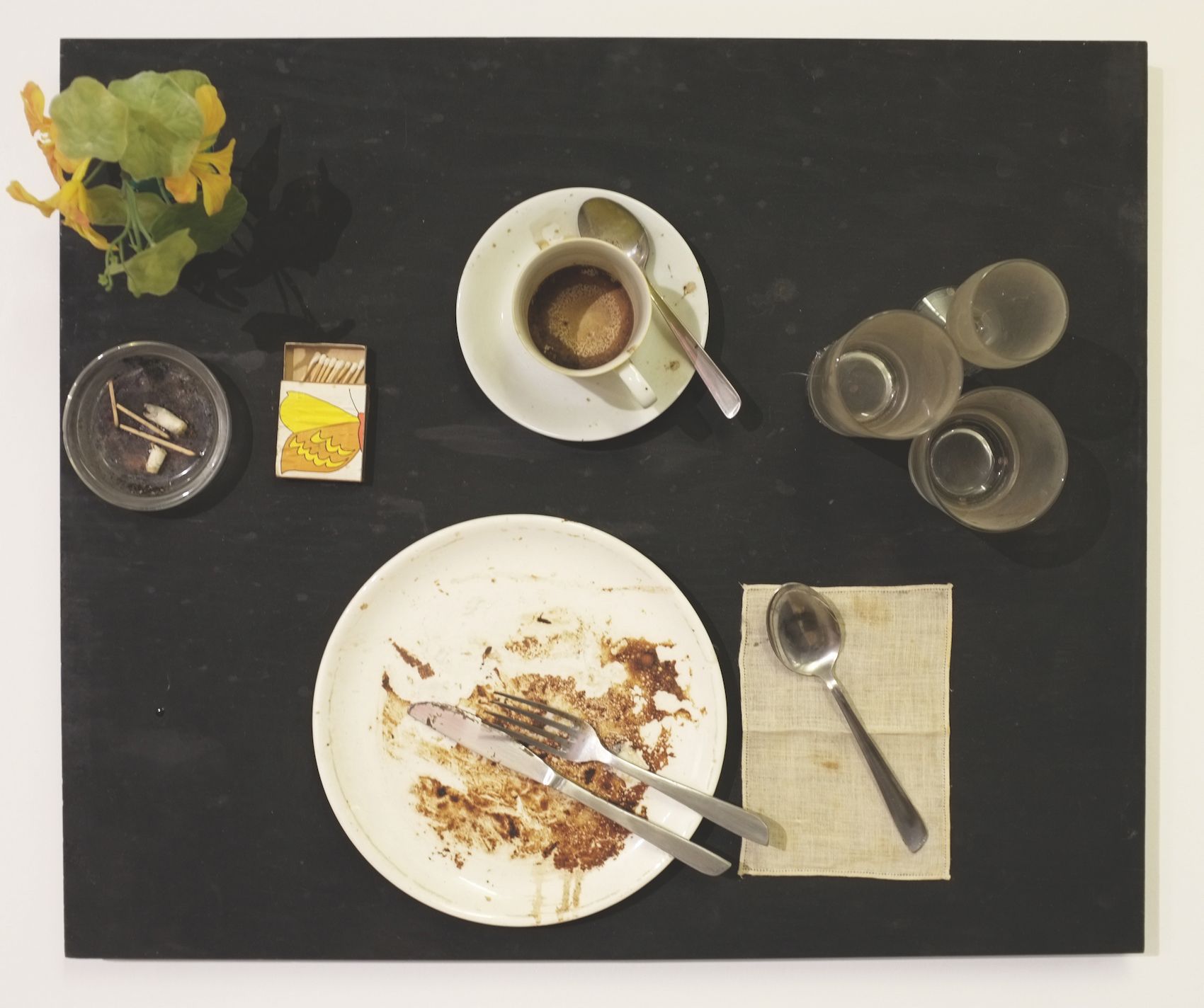 Diese auf Tischplatten fixierten Momente, die einen ganz bestimmten Zeitpunkt im Ablauf eines Essens oder eine zufällig vorgefundene Situation (z.B. ein Arbeitstisch oder ein Flohmarktstand), wie in eine Falle (frz. piège) gegangen, einfrieren lassen – ein Stück Alltagswirklichkeit, eingefangen für immer.