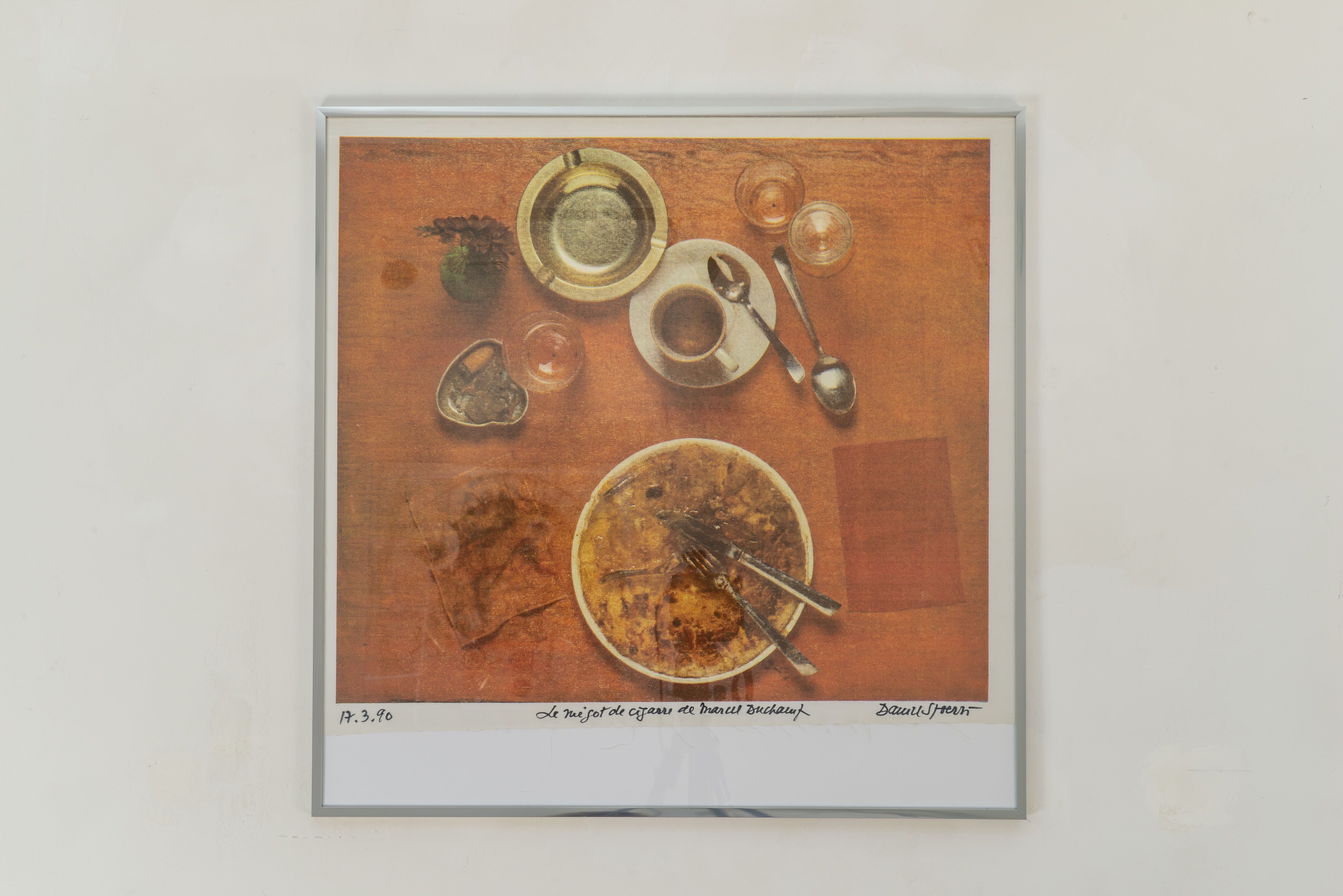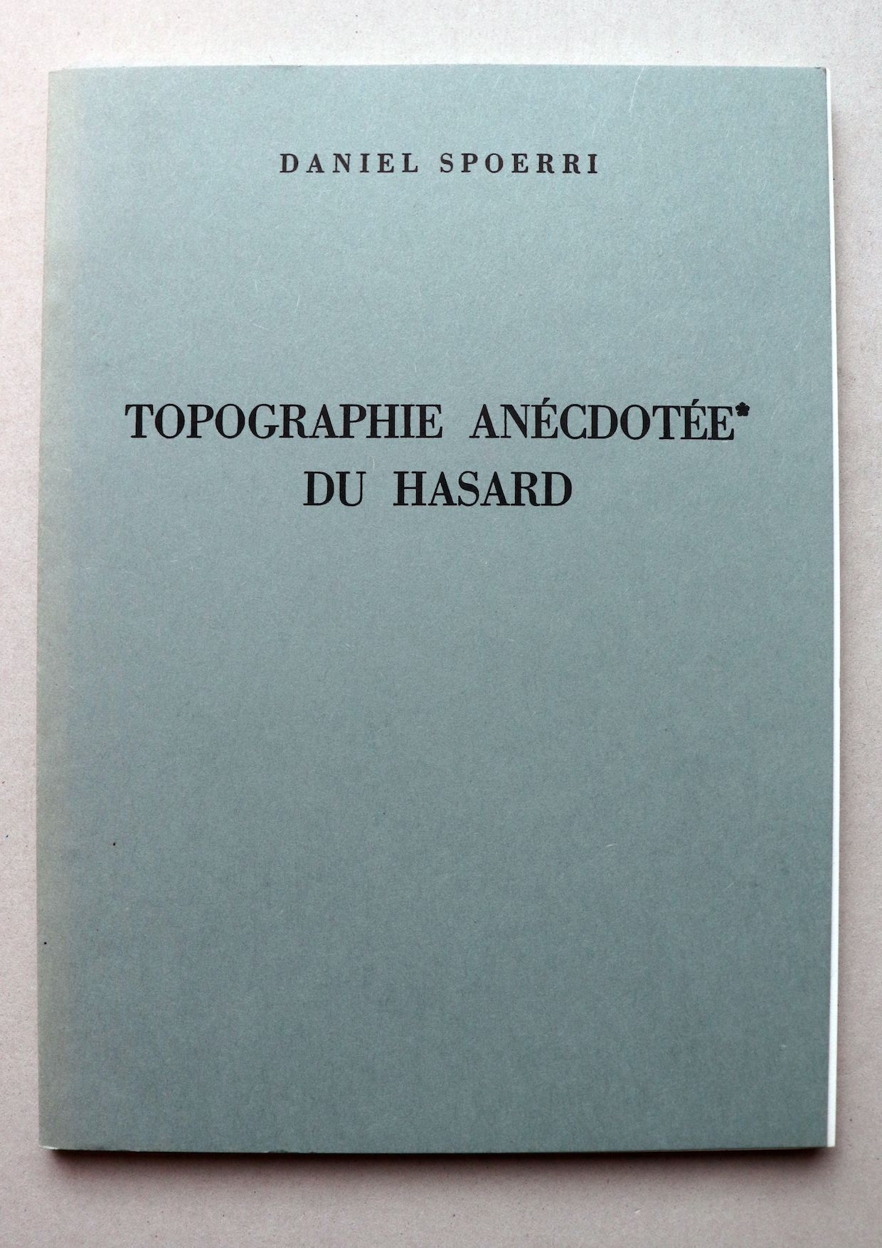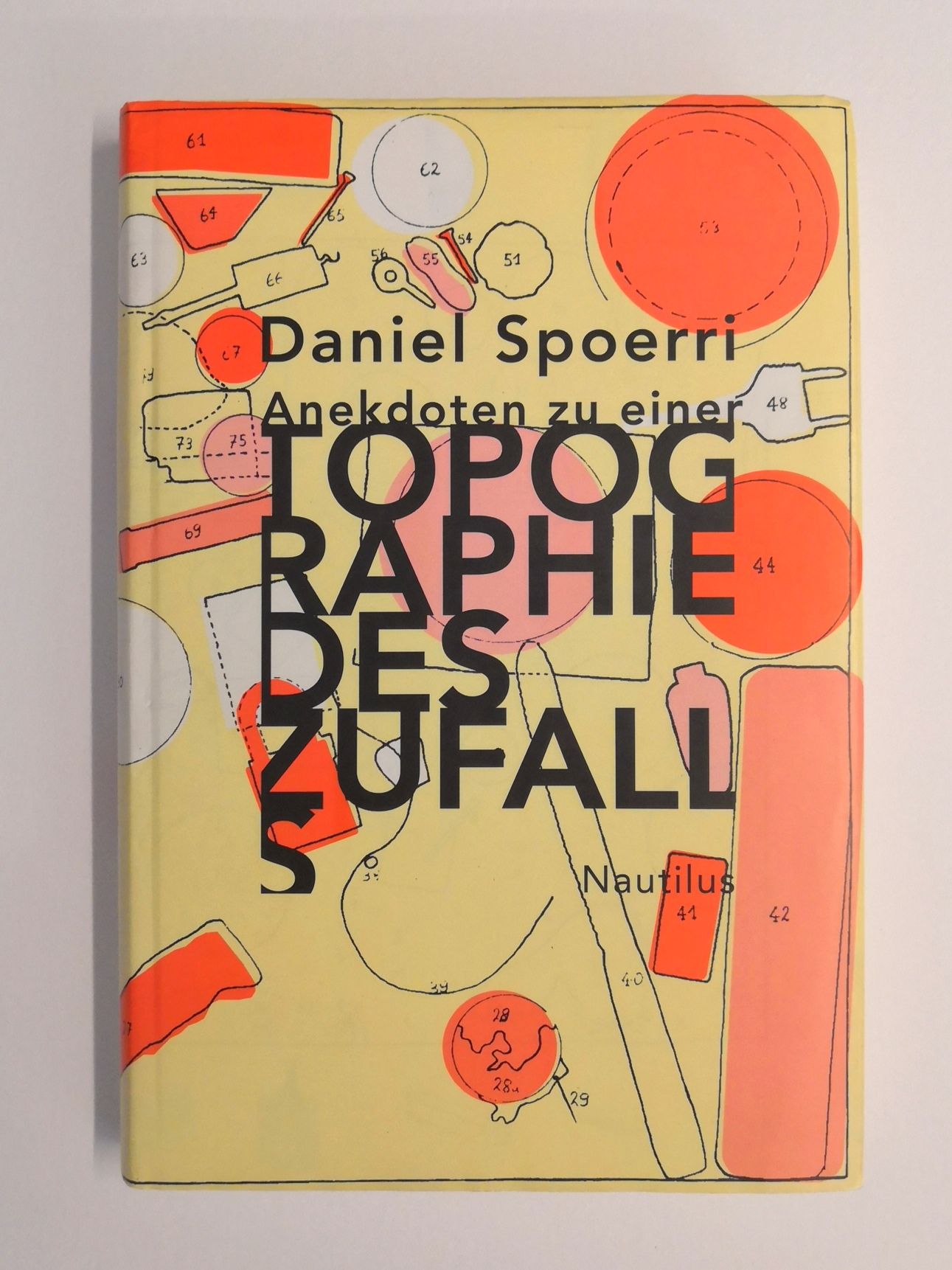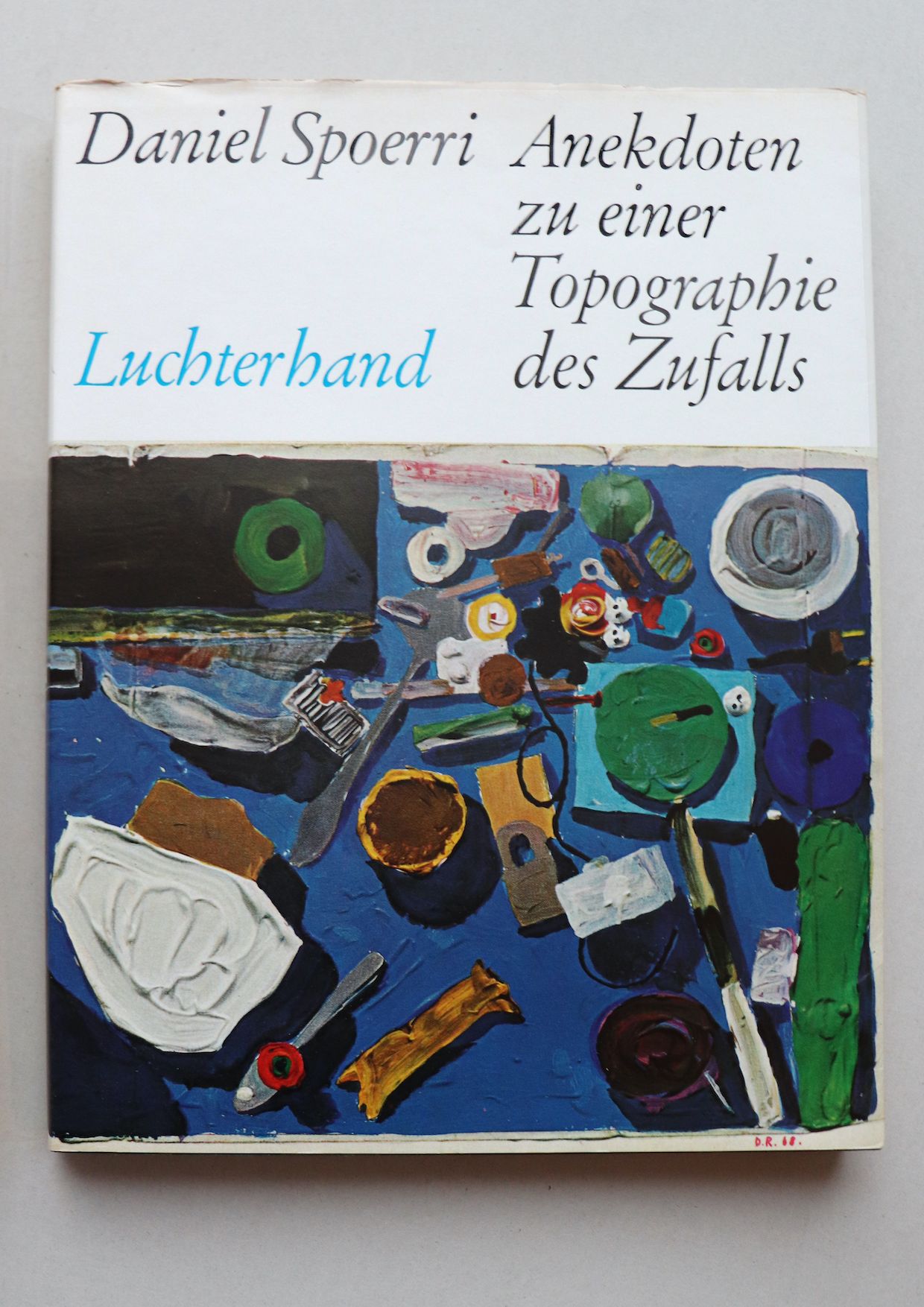 Wie sehr Daniel Spoerri Alltagsgegenstände als Hauptakteure in seinem Schaffen sieht, hat er 1967 in seinem wegweisenden und immer wieder neu aufgelegten Buch Anekdoten zu einer Topographie des Zufalls beschrieben. Vom Salzstreuer bis zur Eierschale – alle zufällig auf dem Tisch herumliegenden Gegenstände und Reste wurden kartografiert und beschrieben.