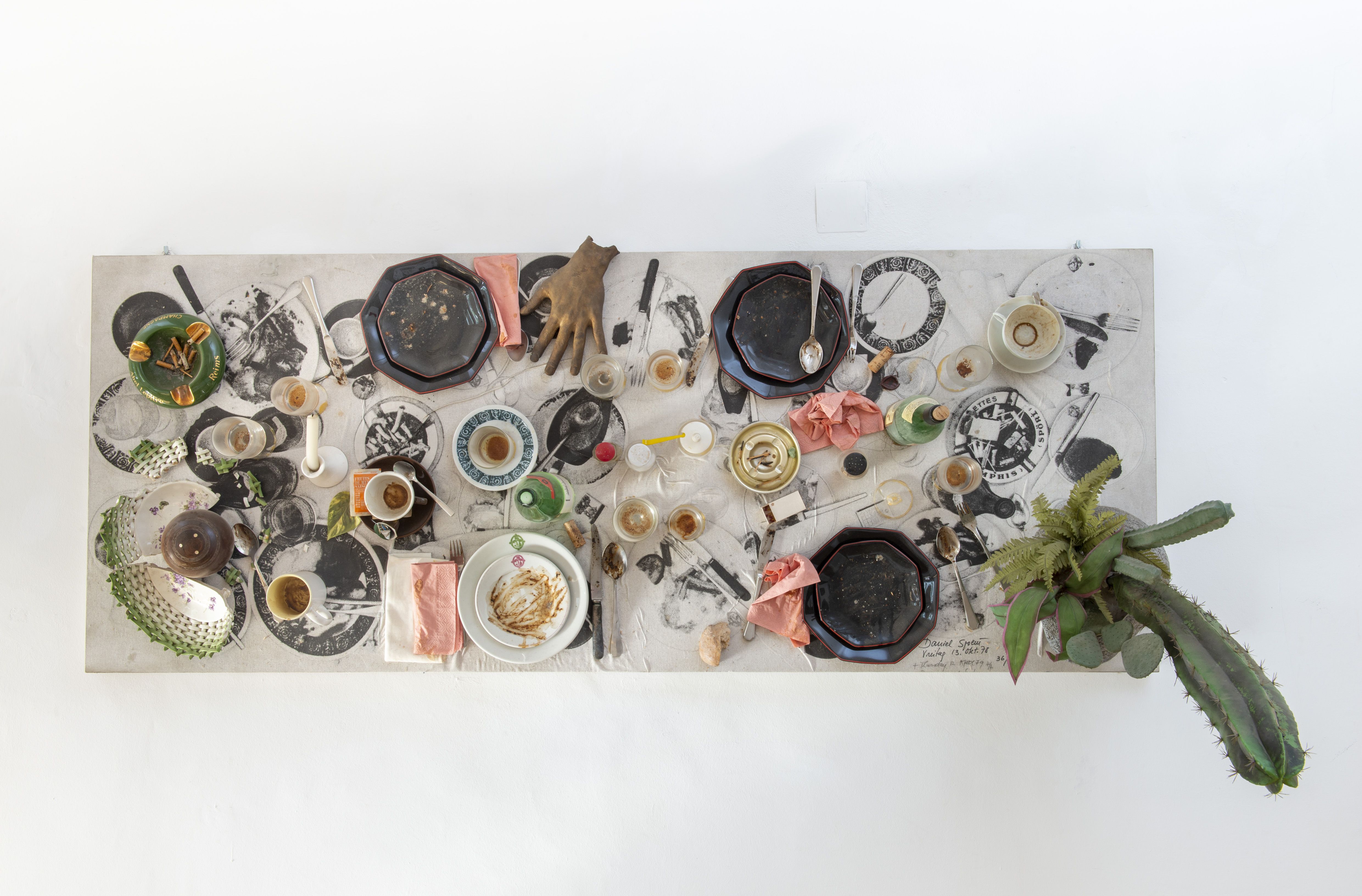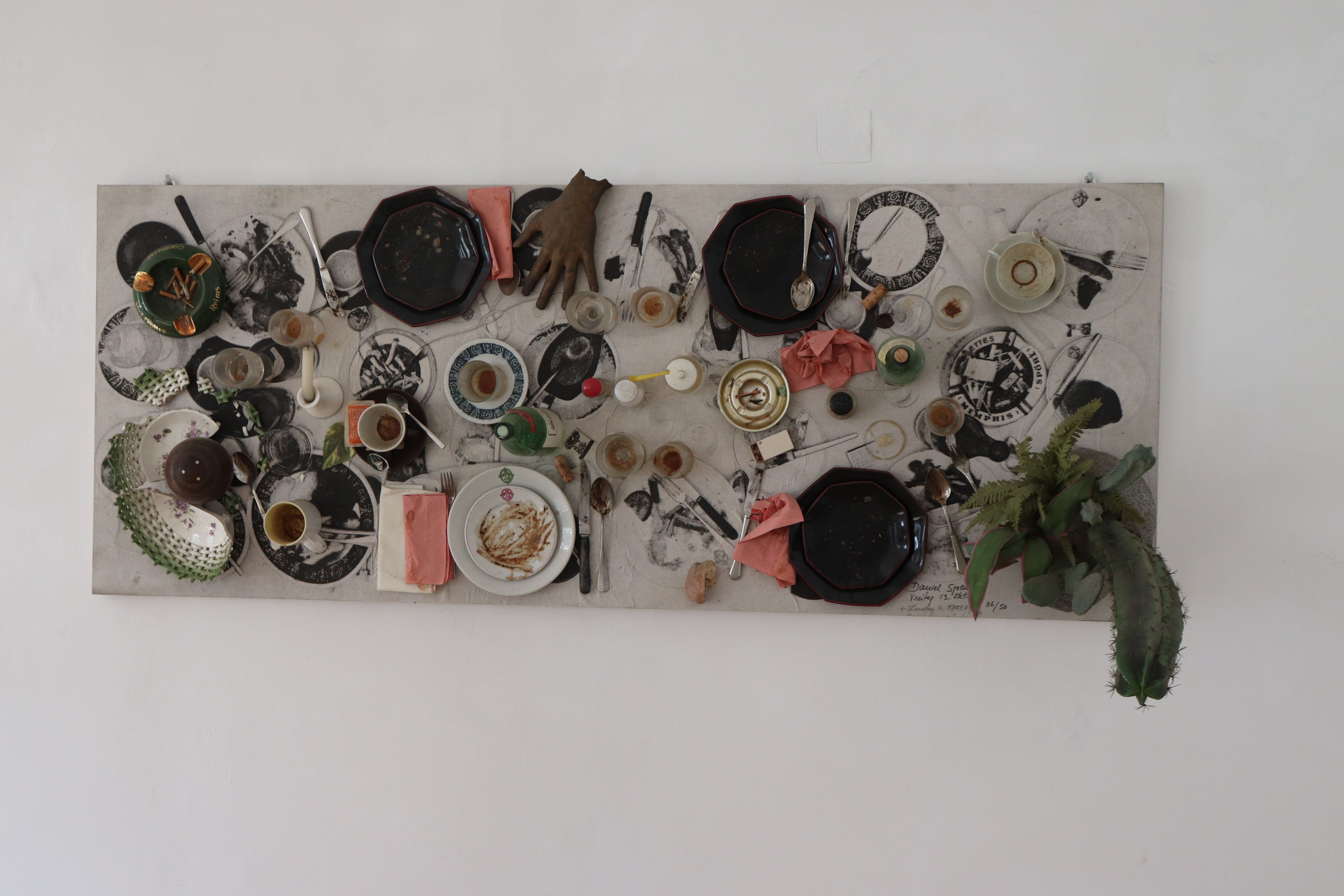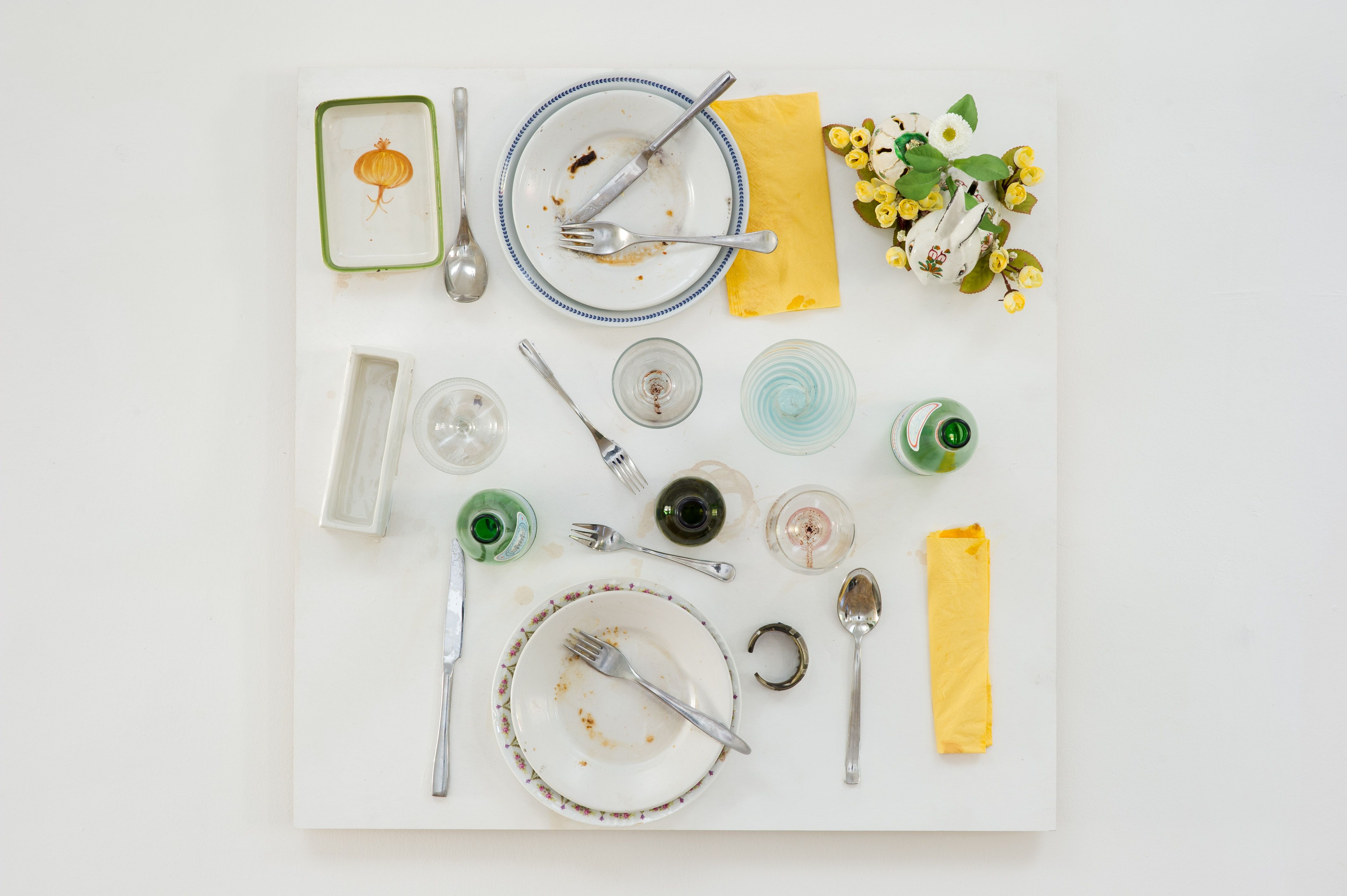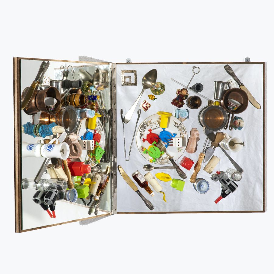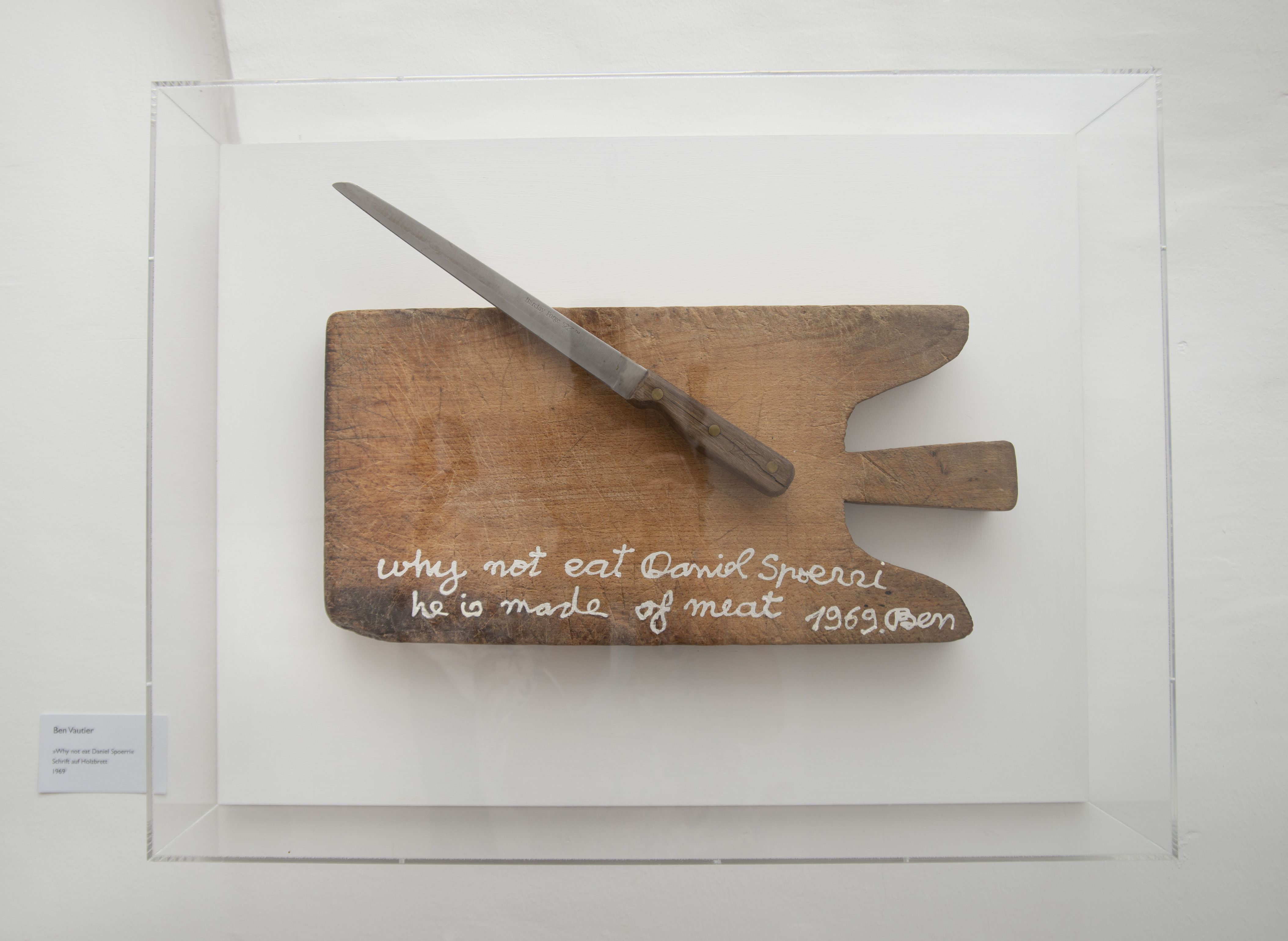Wie sehr Daniel Spoerri Alltagsgegenstände als Hauptakteure in seinem Schaffen sieht, hat er 1967 in seinem wegweisenden und immer wieder neu aufgelegten Buch Anekdoten zu einer Topographie des Zufalls beschrieben. Vom Salzstreuer bis zur Eierschale – alle zufällig auf dem Tisch herumliegenden Gegenstände und Reste wurden kartografiert und beschrieben.