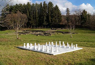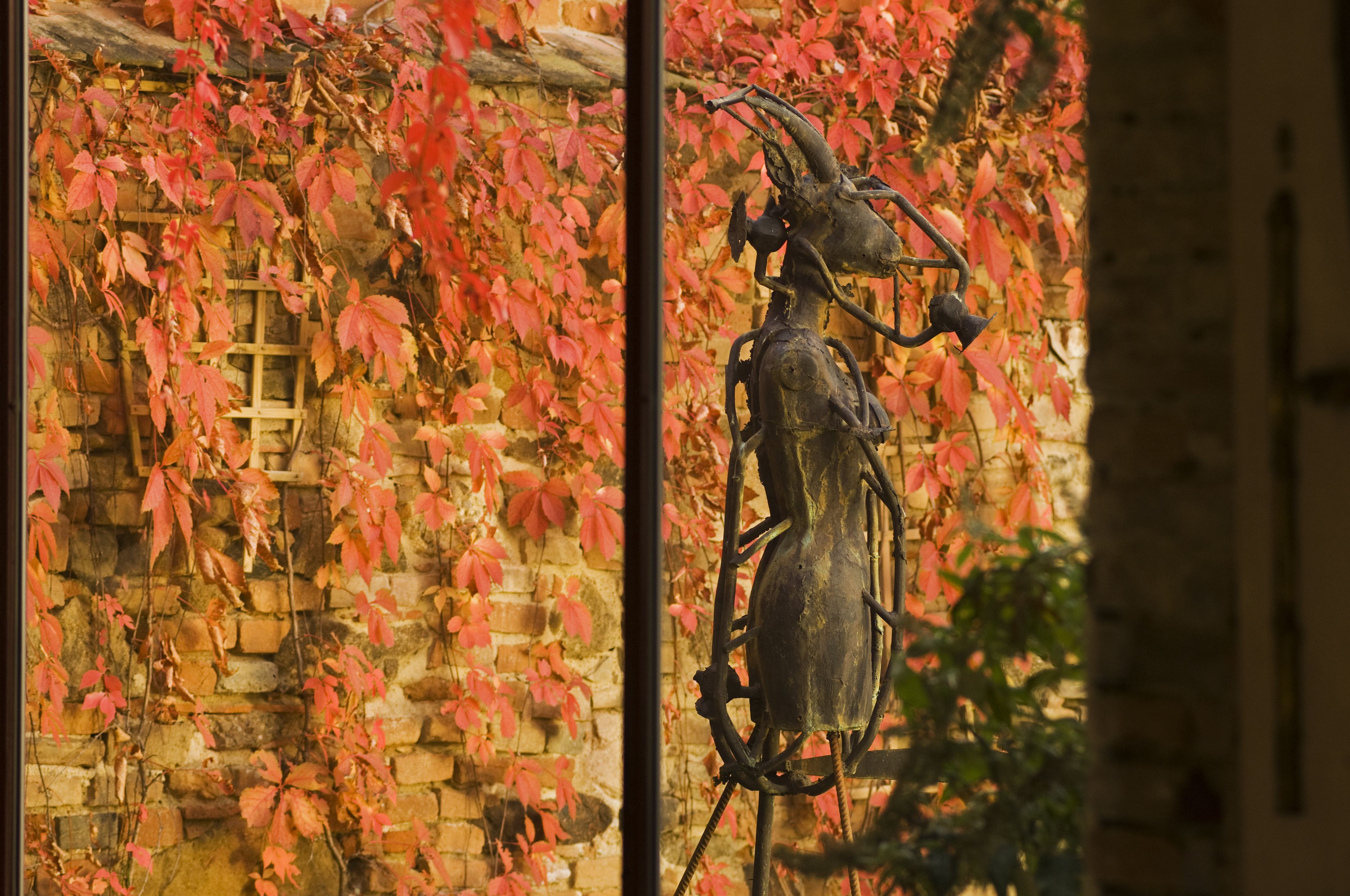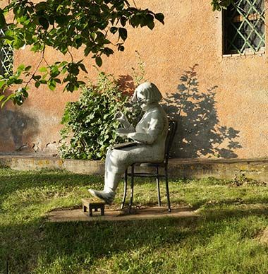 Der Giardino wurde von Daniel Spoerri auch schon einmal sein »Poesiealbum« genannt: Die 16 Hektar große, sanft ansteigende Hügellandschaft mit seinen Wäldchen, großzügigen Wiesen, einem Olivenhain – und einem Ausblick ohnegleichen – lädt von sich aus schon zum Wandern und Verweilen ein, als Rahmen für die über 100 Installationen von mehr als 50 Künstler*innen, die man entdecken kann, wird sie zum idealen Raum zum Versinken und Träumen.
