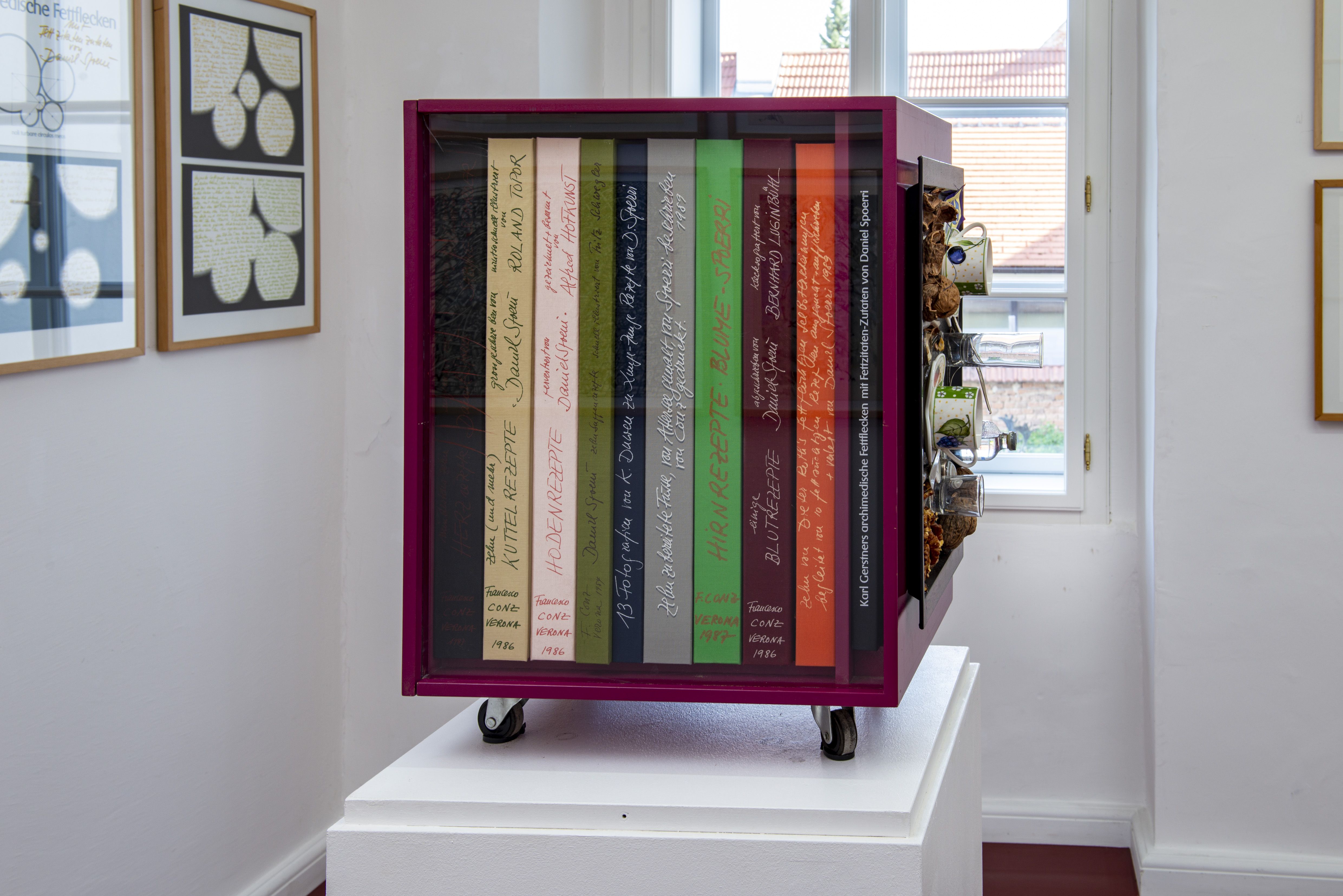 Sein Auseinandersetzen mit Kochtraditionen und mit dem Wandel bei der Wahl von Zutaten mündete in nicht nur einer ansehnlichen Sammlung von Kochbüchern und Kochutensilien, sondern auch in einer eigenen, neunteiligen »Rezeptbibliothek«, die in Zusammenarbeit mit engen Künstlerfreunden, z.B. Roland Topor oder Bernhard Luginbühl, um nur zwei zu nennen, realisiert wurde.